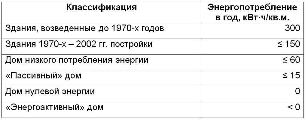 В 2014 году в нашей стране впервые был сформулирован показатель нормы «суммарных энергозатрат», и введен норматив на такие затраты – 160 кВт•ч/м2•год. С 2002 года в Европе запрещено строительство домов с годовым энергопотреблением, превышающим 60 кВт•ч/м². В новых зданиях и сооружениях, возводимых в странах Евросоюза, этот показатель должен быть приближен к нулю к 2020 г.